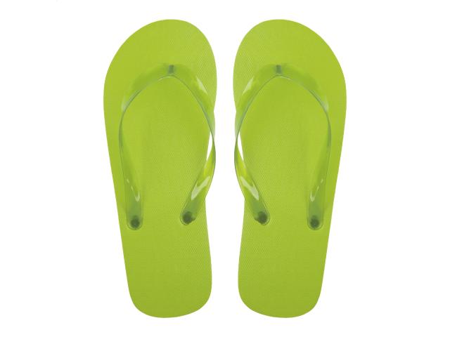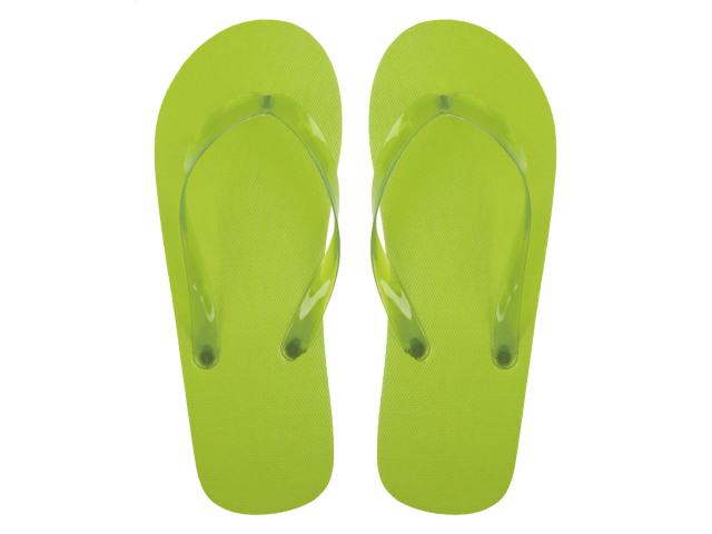 Unisex beach slippers with transparent PVC straps in matching colour. Made of PE.