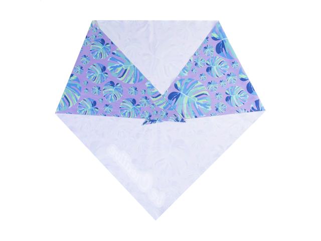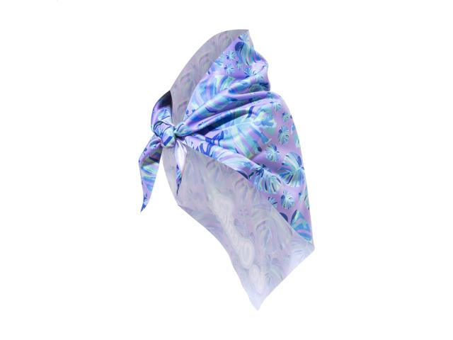 Custom made, triangular RPET microfibre (170 g/m²) head scarf with sublimation printed graphics on front side. MOQ: 50 pcs.