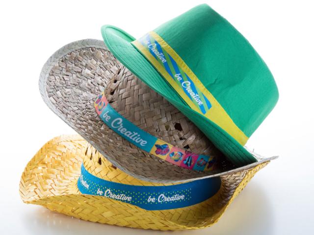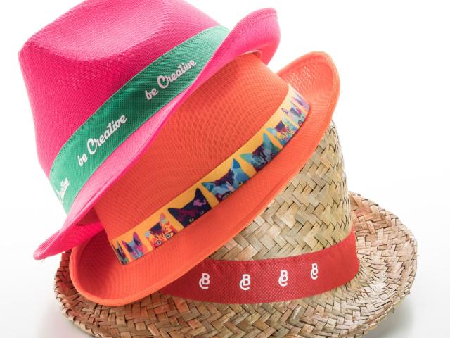 Custom made, polyester band for straw hats. Price includes sublimation printing. MOQ: 100 pcs.