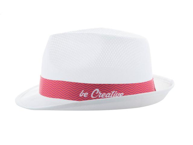 Custom made, 30 mm wide polyester band for straw hats. Price includes sublimation printing. MOQ: 100 pcs.