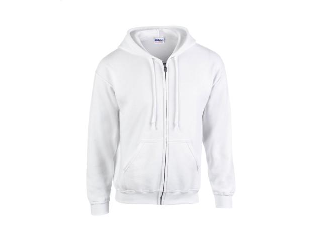 50% cotton / 50% polyester sweatshirt with hood, metal zipper and front pockets, 271 g/m² (white 257 g/m²). Gildan brand product.