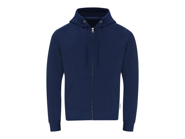 Zipped hoodie sweatshirt with front pockets in 60% organic cotton and 40% RPET polyester, 280 g/m2.