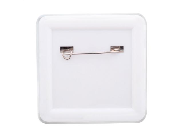 Square shaped pin button badge with custom full colour paper insert. Price includes digital printing. MOQ: 100 pcs.