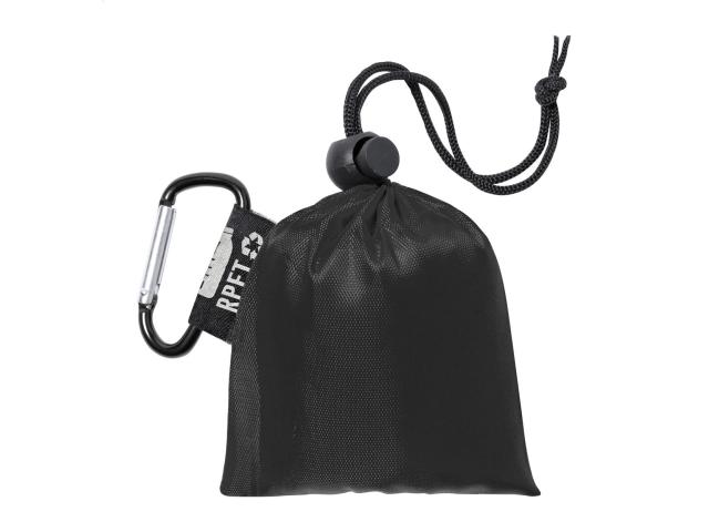 Transparent LDPE poncho in one size for adults. In RPET polyester carry pouch with distinctive RPET label and aluminium carabiner.