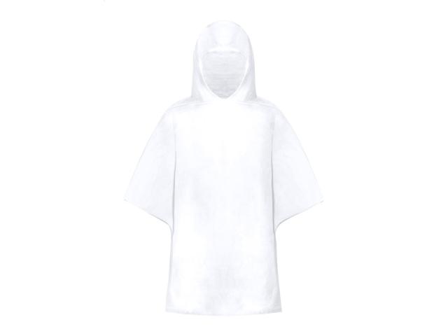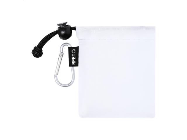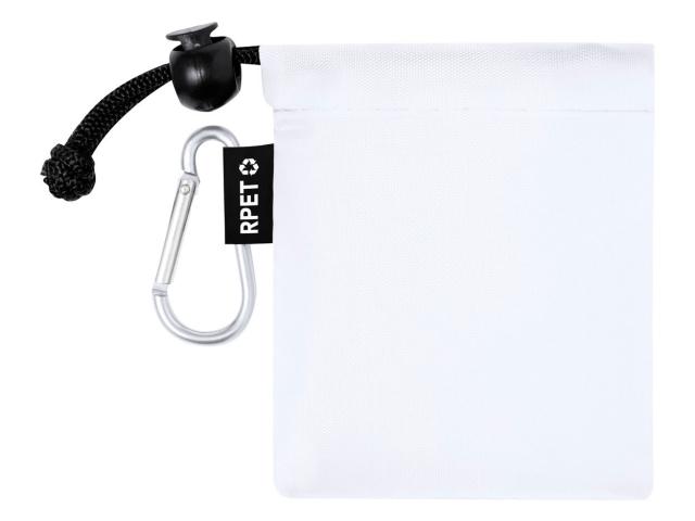 Transparent LDPE poncho for kids. In RPET polyester carry pouch with distinctive RPET label and aluminium carabiner.