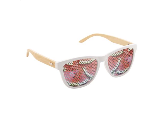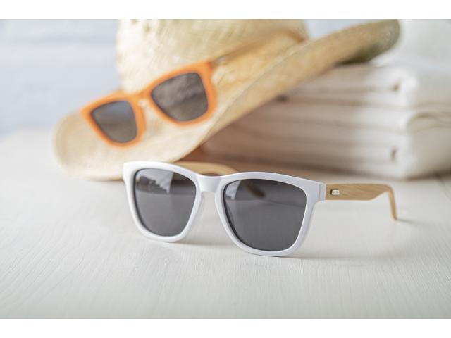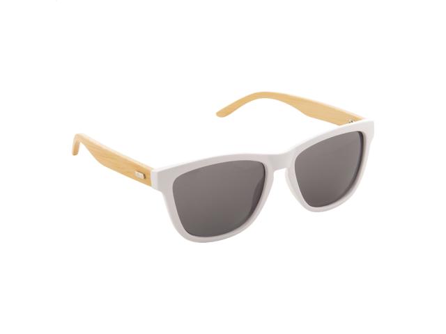 Sunglasses with coloured plastic frame and bamboo temples. With UV 400 protection.