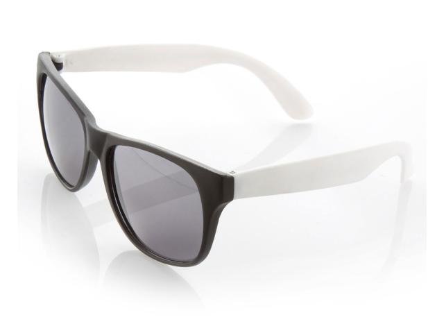 Plastic sunglasses with black frame and coloured temples. With UV 400 protection and matte finish.