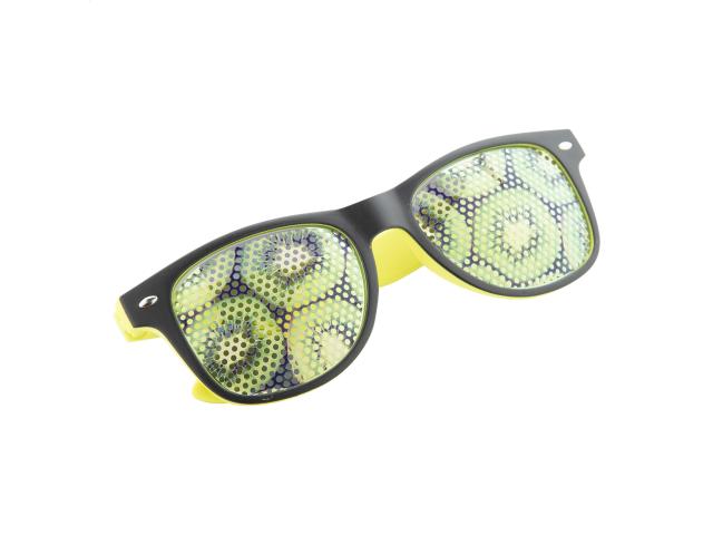 Plastic sunglasses with dual colour frame, mirrored lenses and UV 400 protection.