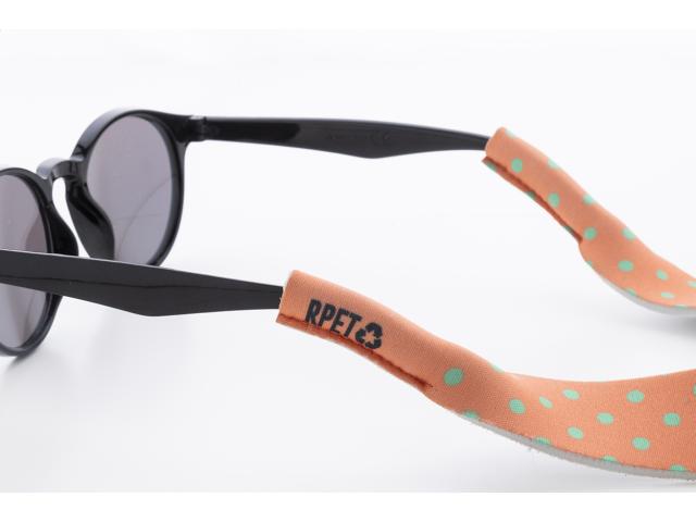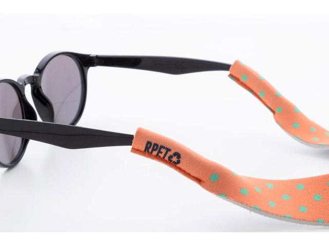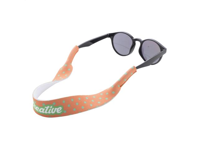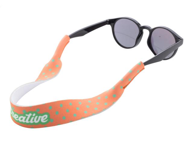 Custom made, RPET neoprene sunglasses strap. With sublimation printed graphics on the front side. MOQ: 100 pcs.