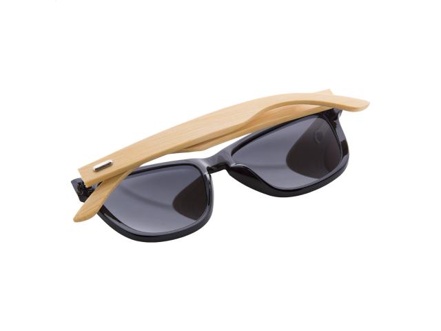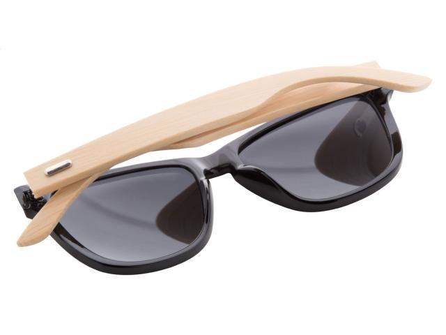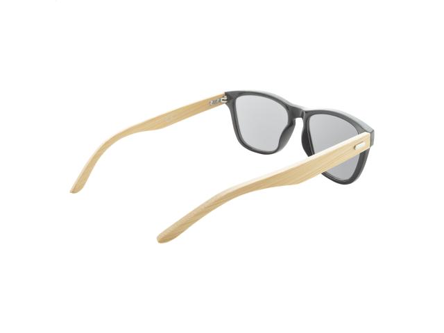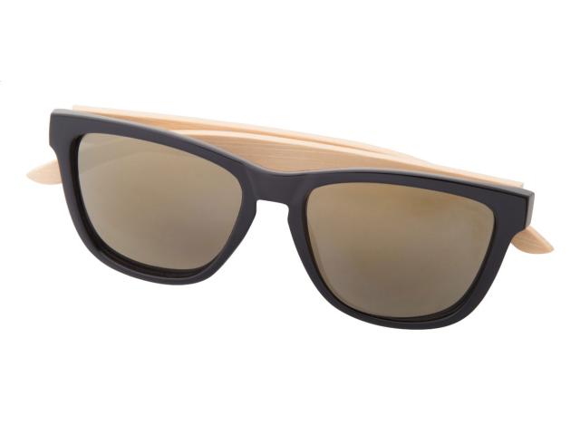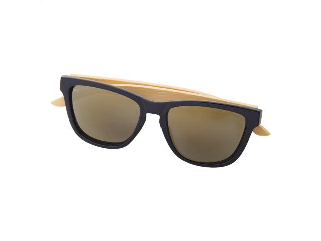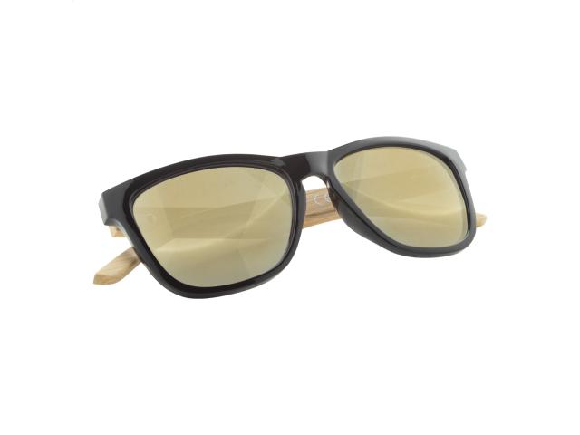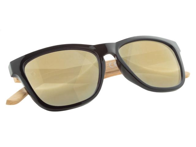 Plastic sunglasses with bamboo temples and mirrored lenses. With UV 400 protection.
