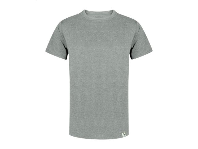 Round neck T-shirt in 60% recycled cotton and 40% RPET polyester single jersey fabric, 150 g/m2.