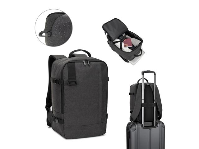 Ruksak dizajniran kako bi zadovoljio dimenzije koje zahtijevaju zrakoplovne tvrtke, omogućuje vam da putujete sa svime što vam je potrebno kao ručna prtljaga. Izrađena od 600D recikliranog poliestera visoke gustoće s vodootpornim premazom i podstavom od 210D recikliranog poliestera. Ima veliki glavni pretinac za odjeću, potpuno podstavljeni pretinac za prijenosno računalo do 14″ i prednji džep. Ruksak vam nudi veću udobnost tijekom putovanja zahvaljujući podstavljenoj gornjoj ručki, kompresijskim trakama sa strane koje vam omogućuju da veličinu ruksaka prilagodite svom volumenu i mrežastom leđima s trakom za kolica. Prednja strana ima dio za vješanje predmeta, poput boce, s karabinerom. Kapacitet veći do 20 L. 250 x 400 x 200 mm