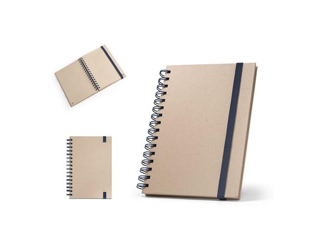 A5 bilježnica s prstenovima, tvrdi uvez, od papira od šećerne trske (80% šećerne trske). Sadrži 160 običnih stranica od papira od šećerne trske (80% šećerne trske) (90 g/m²) i elastiku za zatvaranje bilježnice. 147 x 214 mm