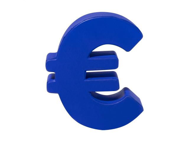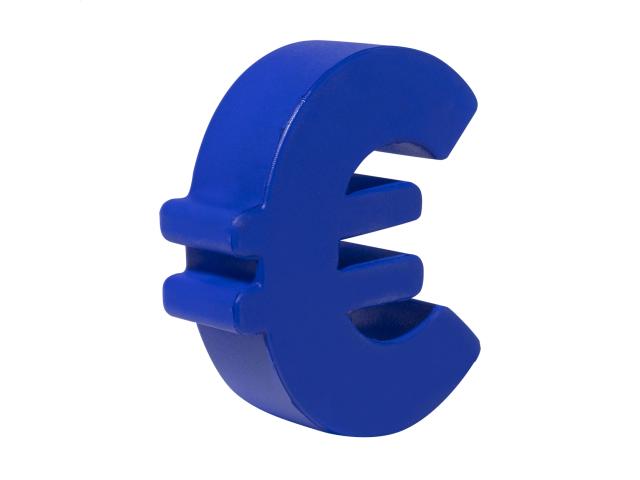 Euro sign shaped antistress ball in PU foam.