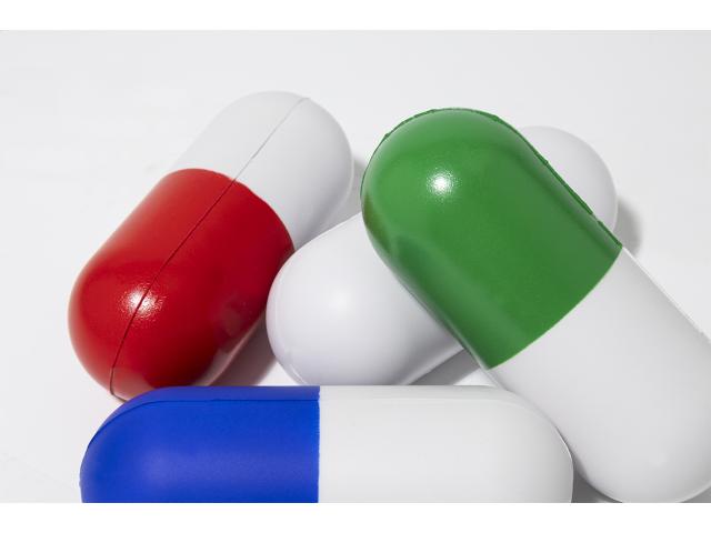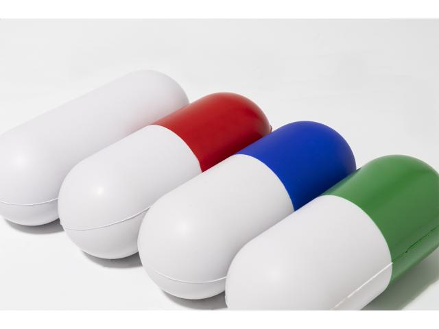 Capsule shaped antistress ball in PU foam.