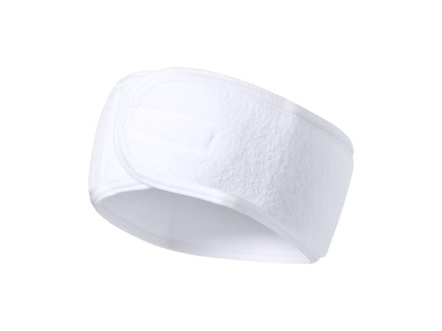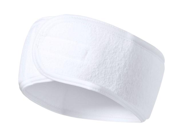 Adjustable cosmetic headband in polyester with velcro closure.