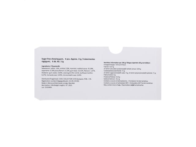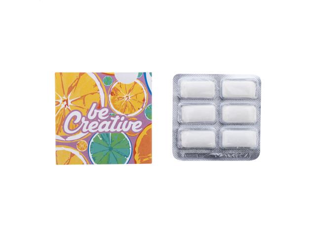 6 pcs sugarfree chewing gum in blister with custom made, full colour printed paper sleeve. MOQ: 100 pcs.