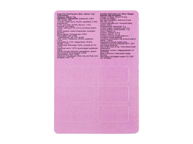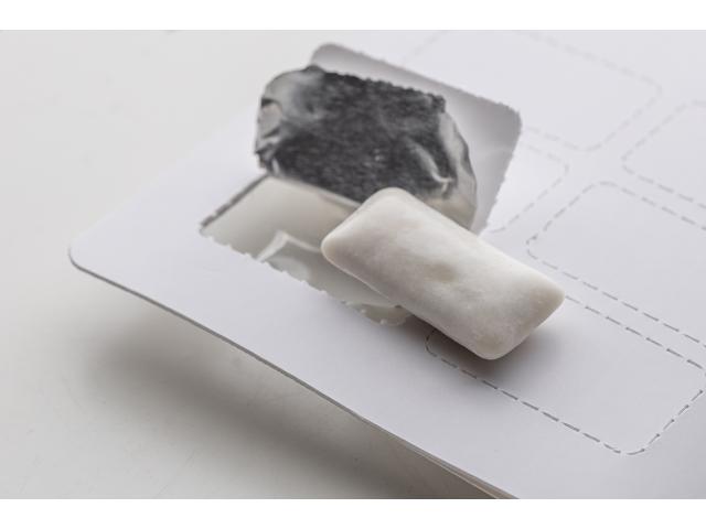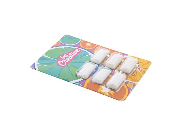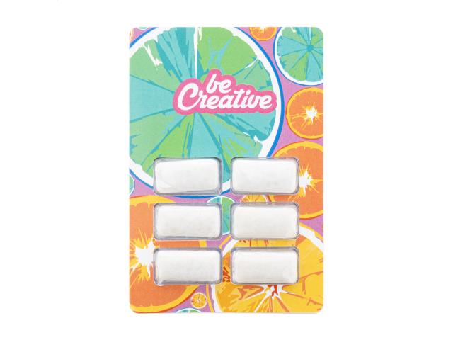 6 pcs sugar free chewing gum in blister with custom made, full colour printed perforated paper sleeve. MOQ: 100 pcs.