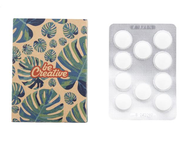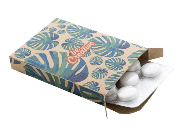 10 pcs large sized mint candies in blister with custom made, full colour printed kraft paper box. MOQ: 100 pcs.