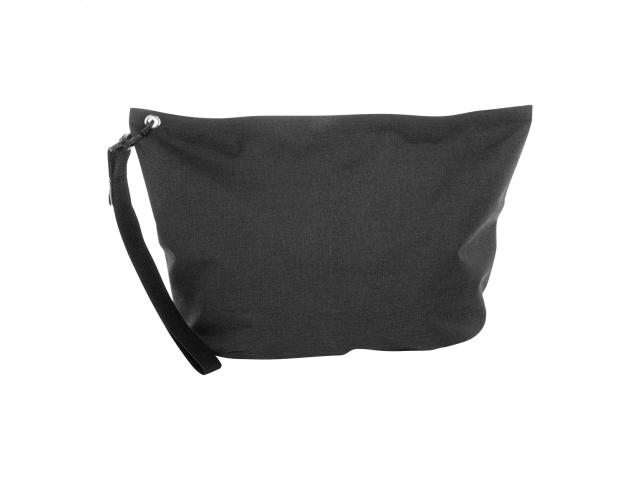 Waterproof, zipped cosmetic bag in 300D RPET polyester with carabiner wrist strap. With distinctive RPET label.