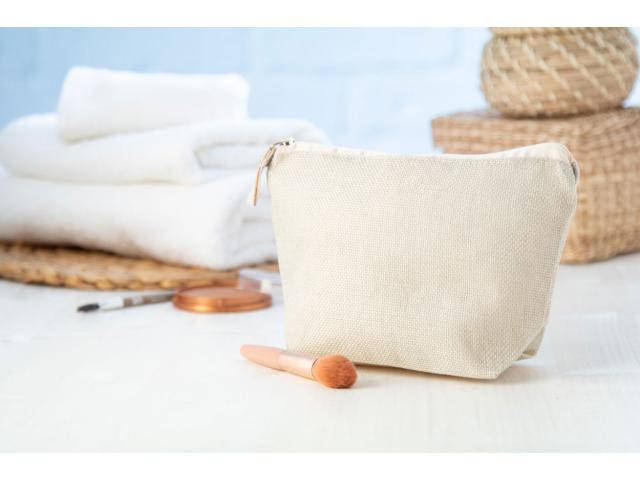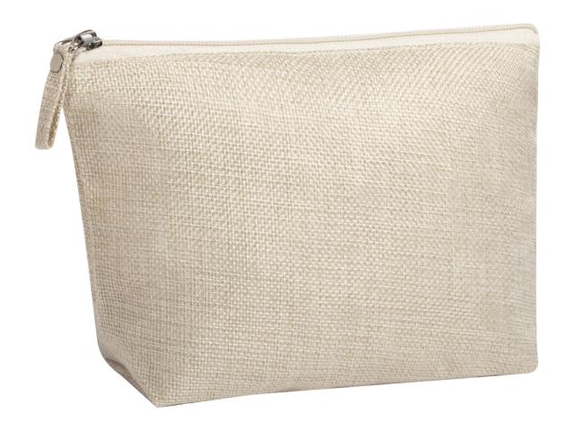 Zipped cosmetic bag in natural colour polyester.