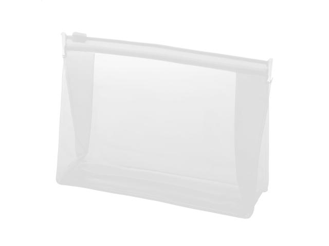 Zipped, transparent PVC cosmetic bag.