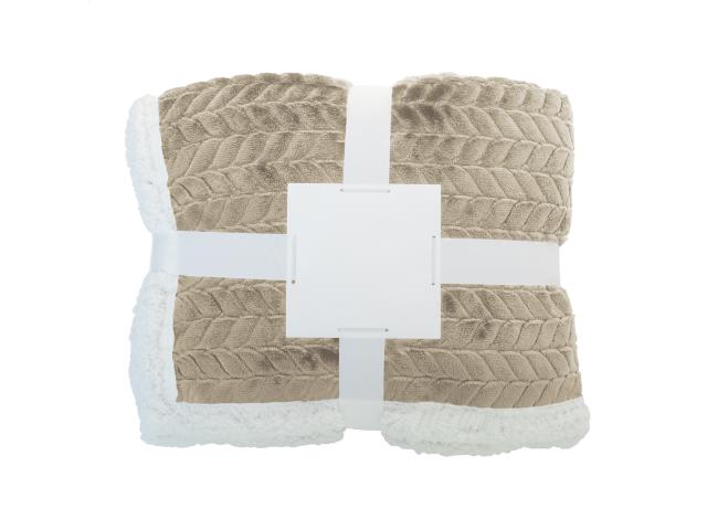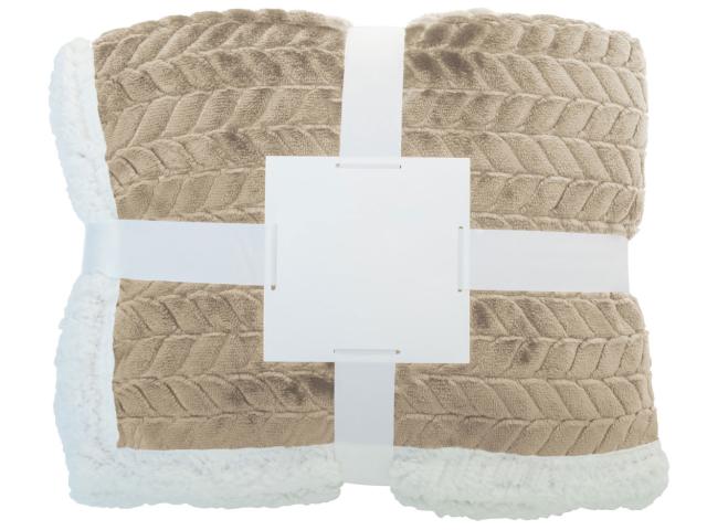 Dual-layer RPET blanket with jacquard pattern. With 240 g/m² RPET flannel fleece and reversible 210 g/m² RPET sherpa fleece lining. Wrapped in ribbon and printable paper card.