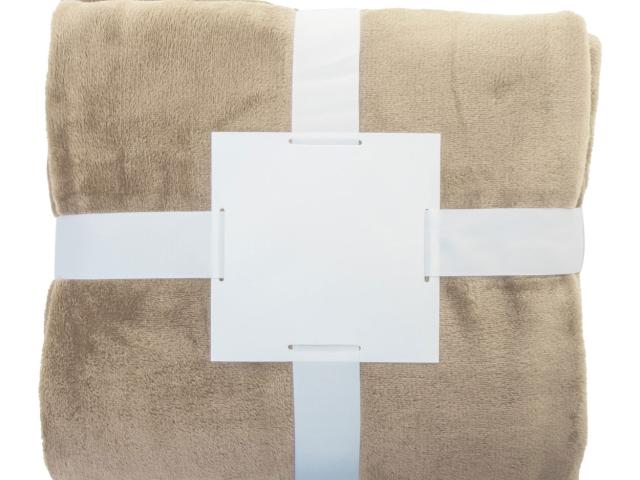 RPET flannel fleece blanket, 260 gr/m². Wrapped in ribbon and printable paper card.