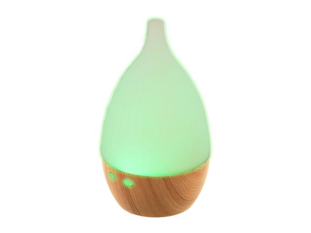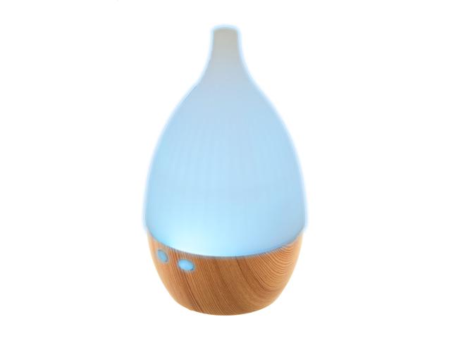 Recycled PP plastic desk humidifier with wooden pattern and multicolour LED light. Including USB charger cable. Tank capacity: 120 ml.
