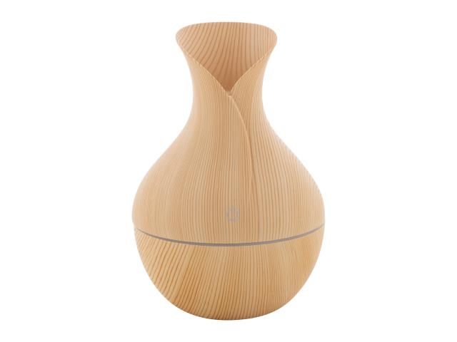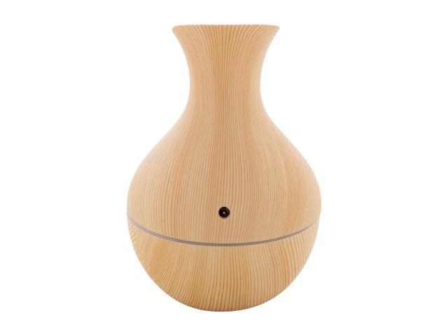 Plastic wooden pattern desk humidifier with multicolour LED light. Including USB charger cable. Tank capacity: 130 ml.