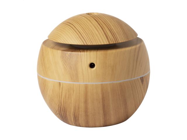 Plastic wooden pattern desk humidifier with multicolour LED light. Including USB charger cable. Tank capacity: 130 ml. In gift box.
