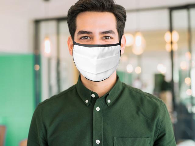 Washable and reusable two-layer cotton face mask with elastic piping and earloops. In adult size. Made of two layers of 100% cotton (120gr/m²) fabrics. (eg. Covid prevention)