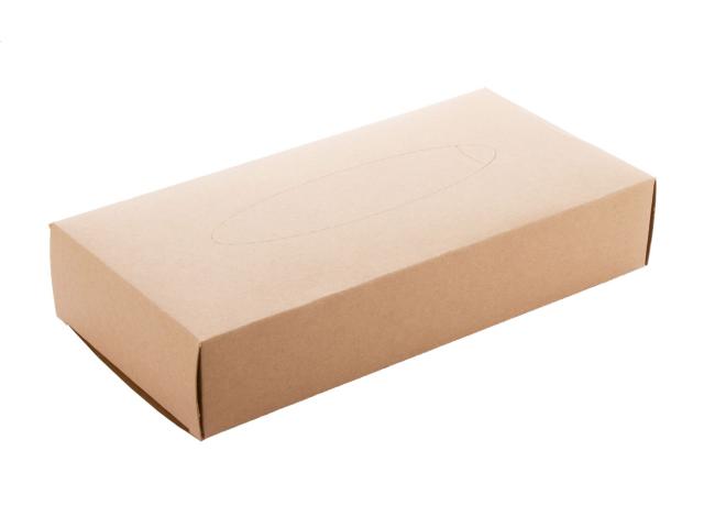 100 pcs of 2-ply recycled paper tissues in custom made kraft paper dispenser box. Price includes full colour printing. MOQ: 100 pcs.