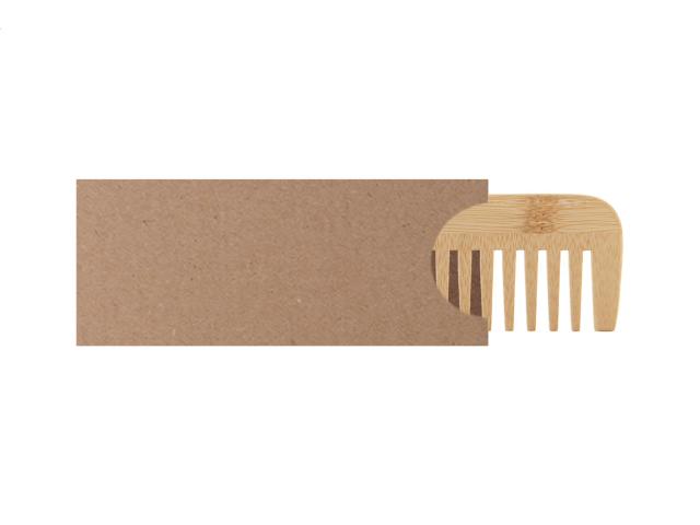 Bamboo comb in kraft paper sleeve.