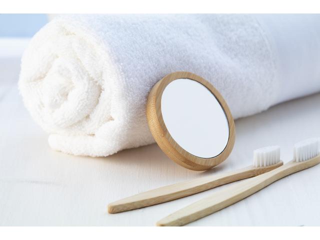 Round shaped, bamboo pocket mirror.