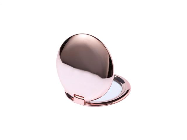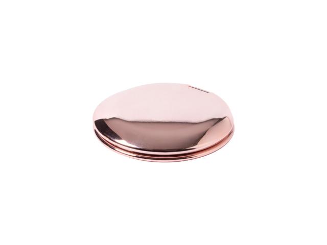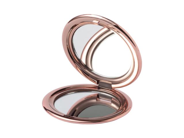 ABS plastic covered pocket mirror with metallic finish. With normal and magnifying sides.