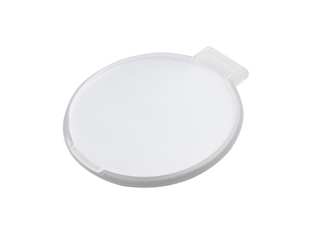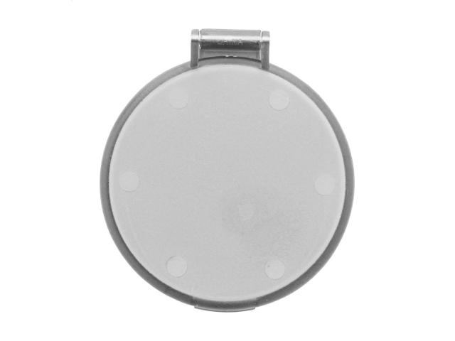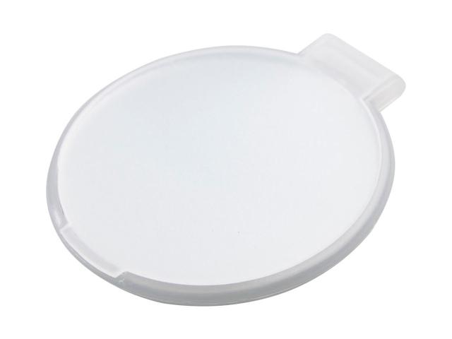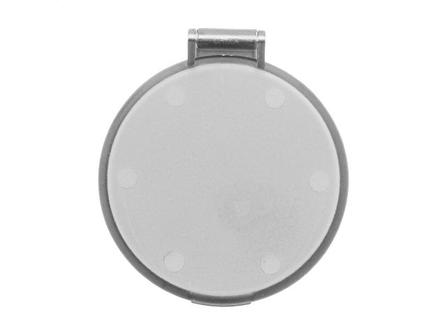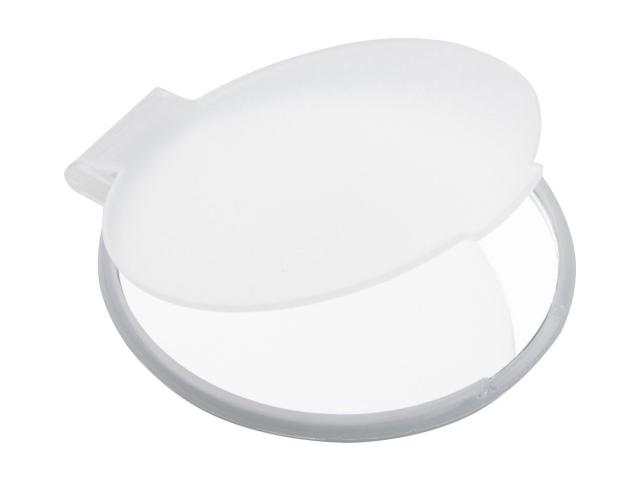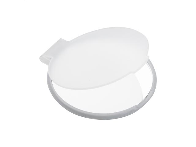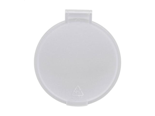 Round pocket mirror in translucent recycled PS case.