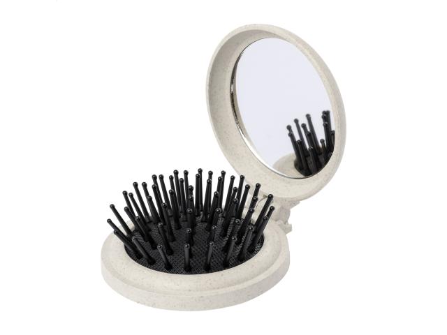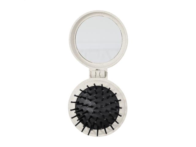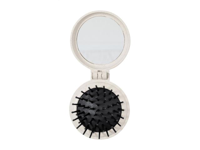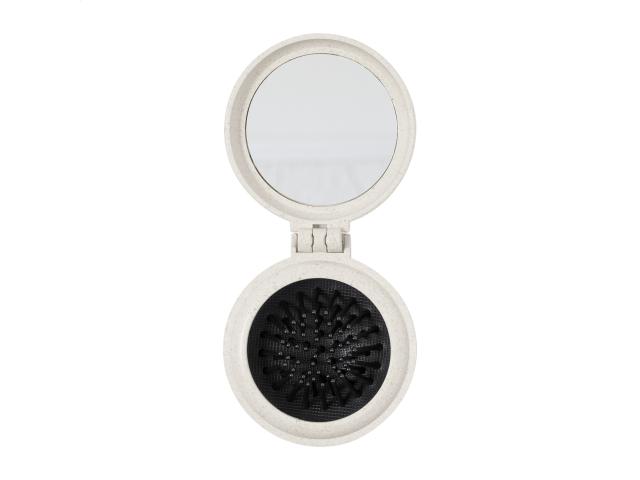 Foldable, ecological wheat straw plastic hairbrush with mirror.