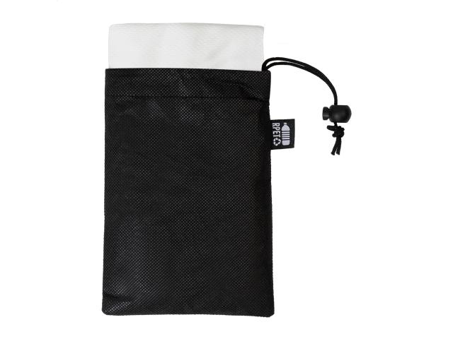 RPET microfibre sport towel in RPET non-woven carry pouch with distinctive RPET label. RPET polyester, 140 g/m².