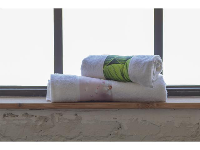 100% cotton, 400 g/m² terry towel with polyester border for sublimation printing. Price includes sublimation printing. MOQ: 25 pcs.