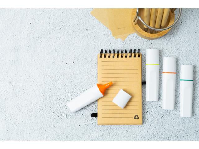 Recycled ABS plastic highlighter with cap.