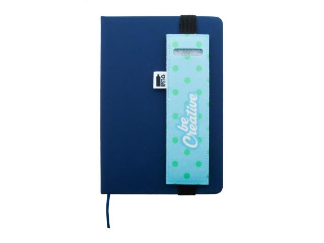 Custom made, RPET felt pen case with full colour printed front side and rubber band for attaching it to a notebook cover. With distinctive RPET label. Price includes sublimation printing. MOQ: 50 pcs.