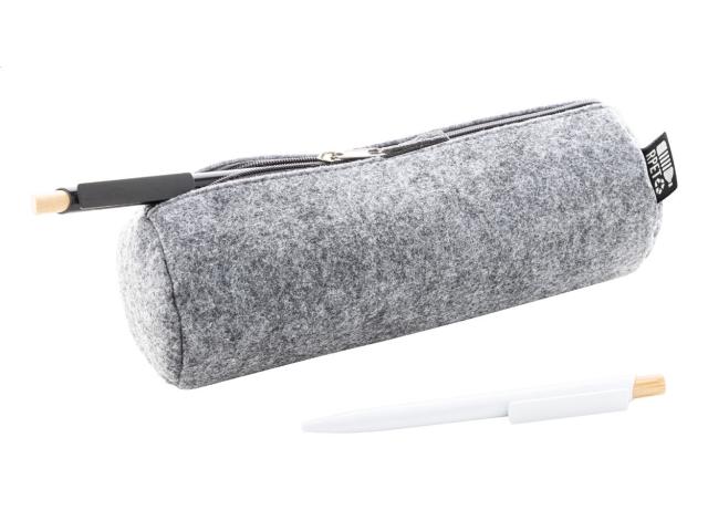 Zipped RPET felt pen case. With distinctive RPET label.