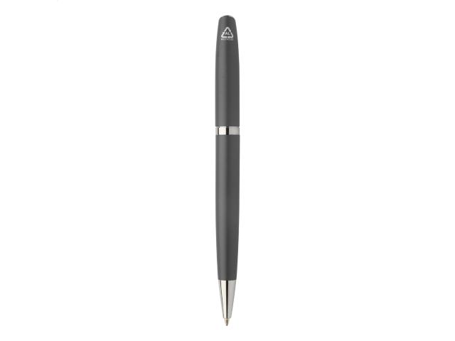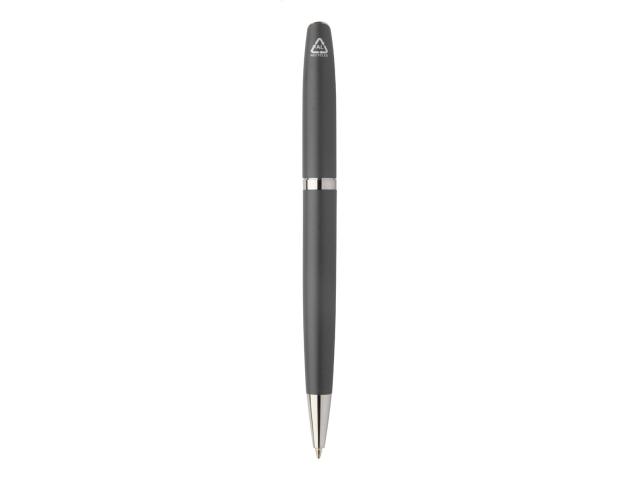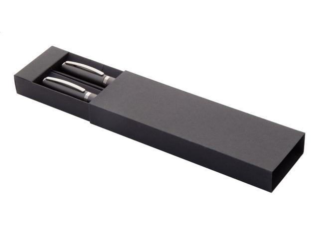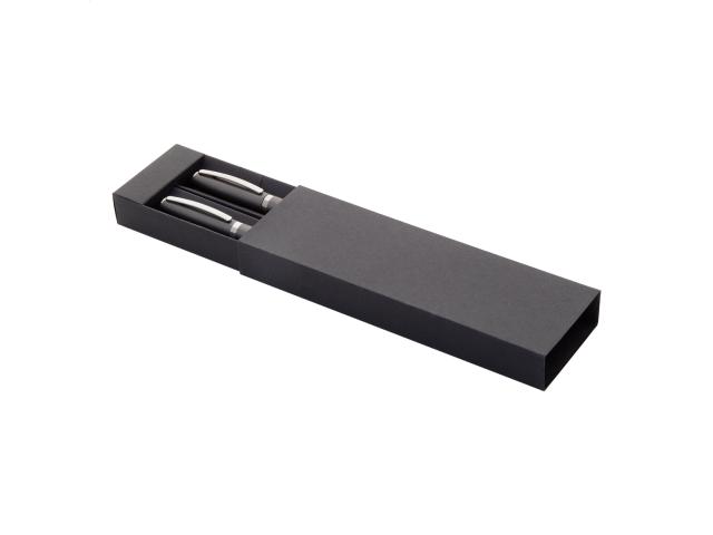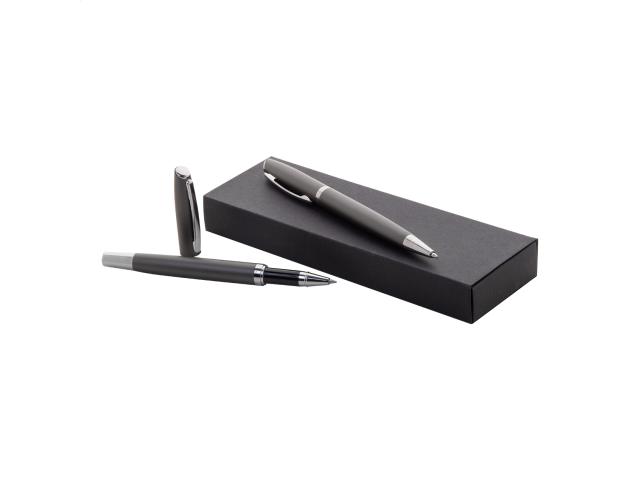 Recycled aluminium pen set with roller and ballpoint pen in black paper gift box. With blue refill.