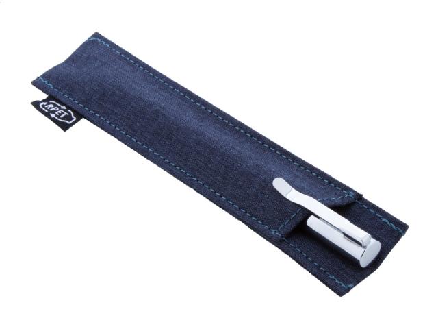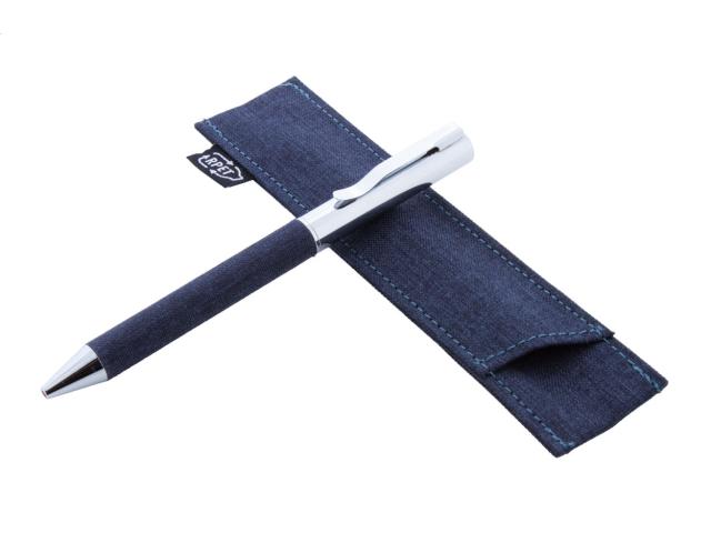 Metal twist ballpoint pen with RPET polyester covered barrel. In matching RPET polyester case. With blue refill.