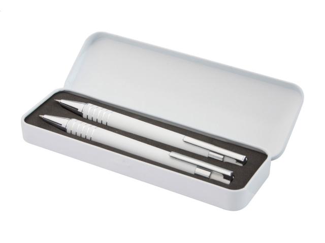 Aluminium ballpoint pen and mechanical pencil (with 0,7 mm leads) in metal box. With blue refill.