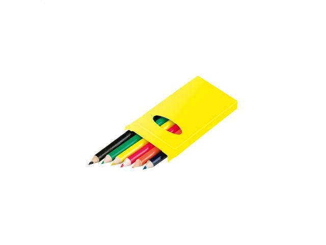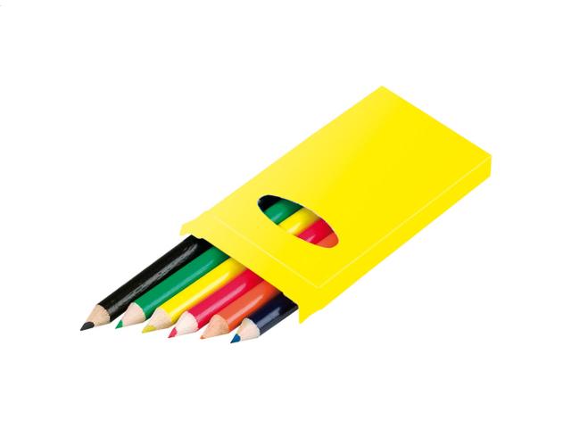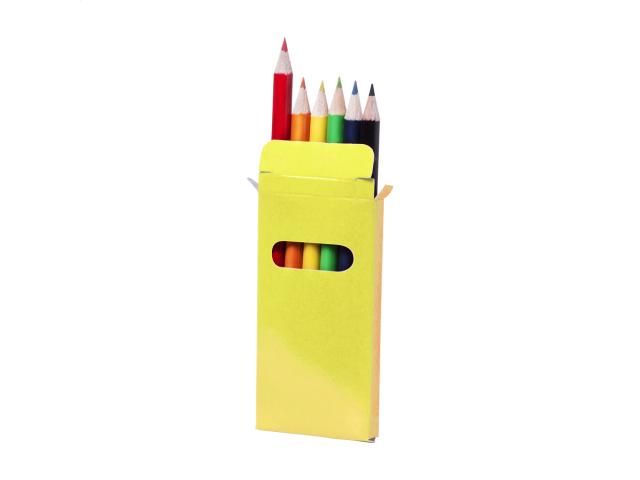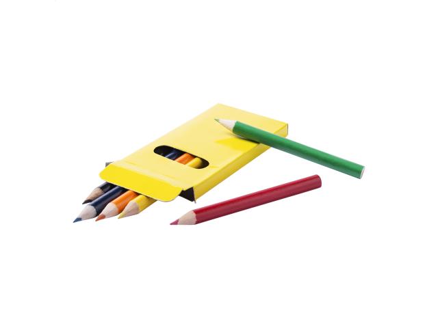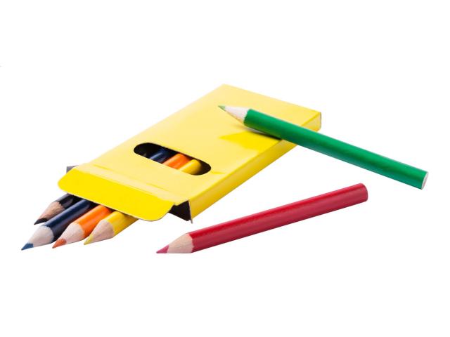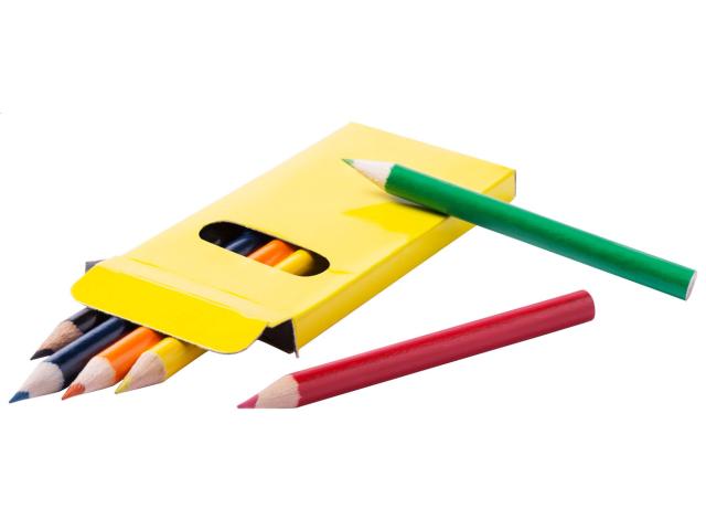Wooden coloured pencils (6 pcs) in coloured paper box.