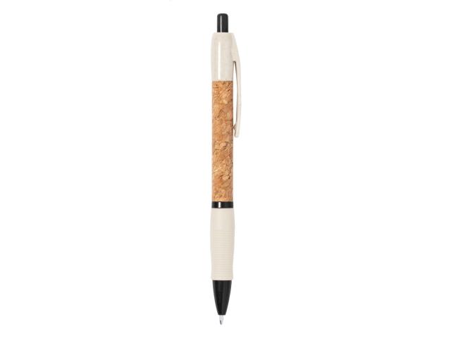 Ecological wheat straw plastic ballpoint pen with natural cork covered barrel and rubber grip. With blue refill.
