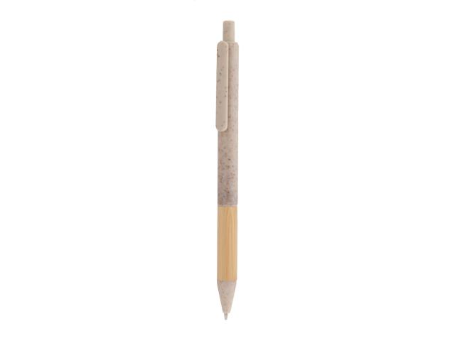Ecological wheat straw plastic ballpoint pen with bamboo grip and coloured parts. With blue refill.
