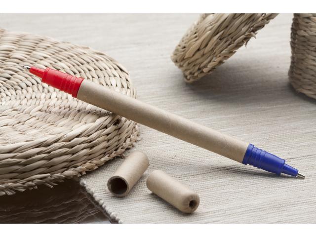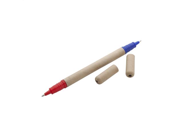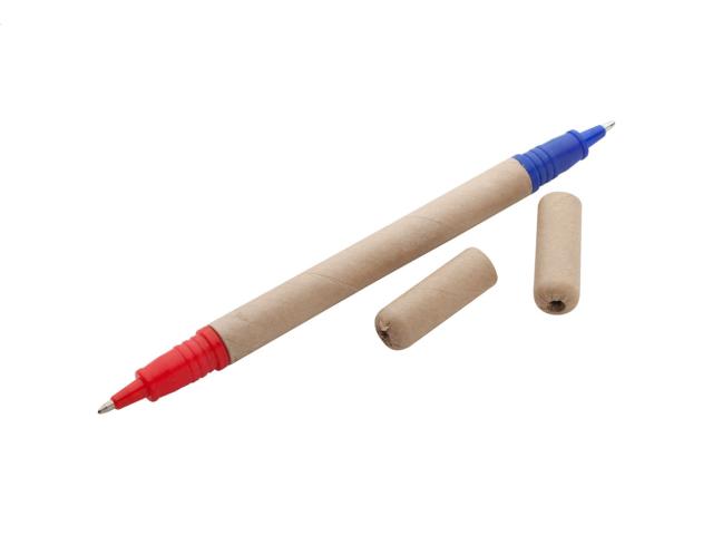 Recycled paper ballpoint pen with two ends. Blue and red refill.